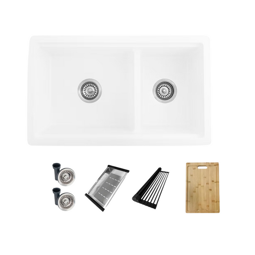 View full detailsStylish WATERTON 30" Dual Mount Workstation Double Bowl White Composite Granite Kitchen Sink with Built-in Accessories brings both form and functio...